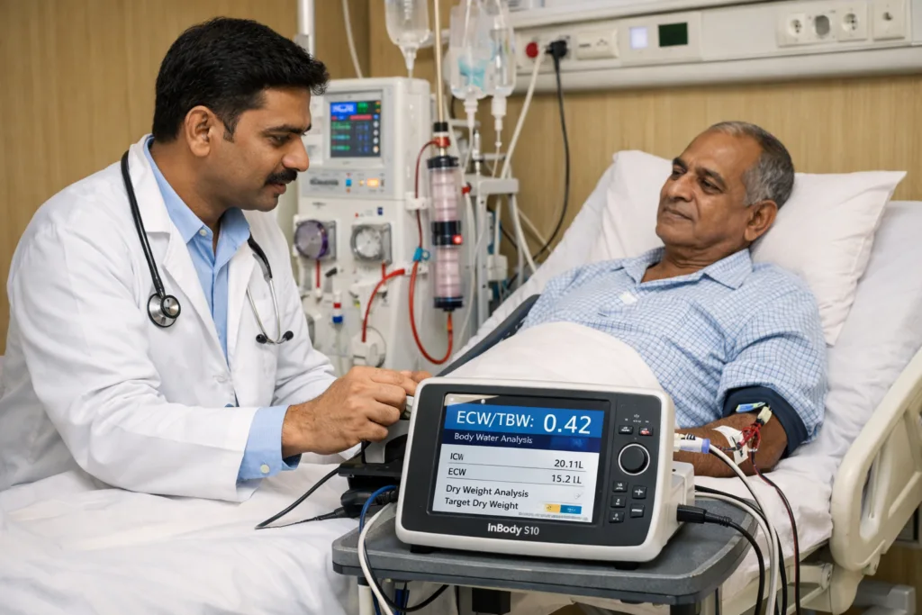 - KDOQI guidelines now recommend post-dialysis bioimpedance for body composition assessment in CKD 5D patients. The Indian Consensus on Sarcopenia (2025) recommends BIA for all patients with maintenance dialysis. The clinical evidence for InBody S10-guided fluid management is no longer emerging it is established.