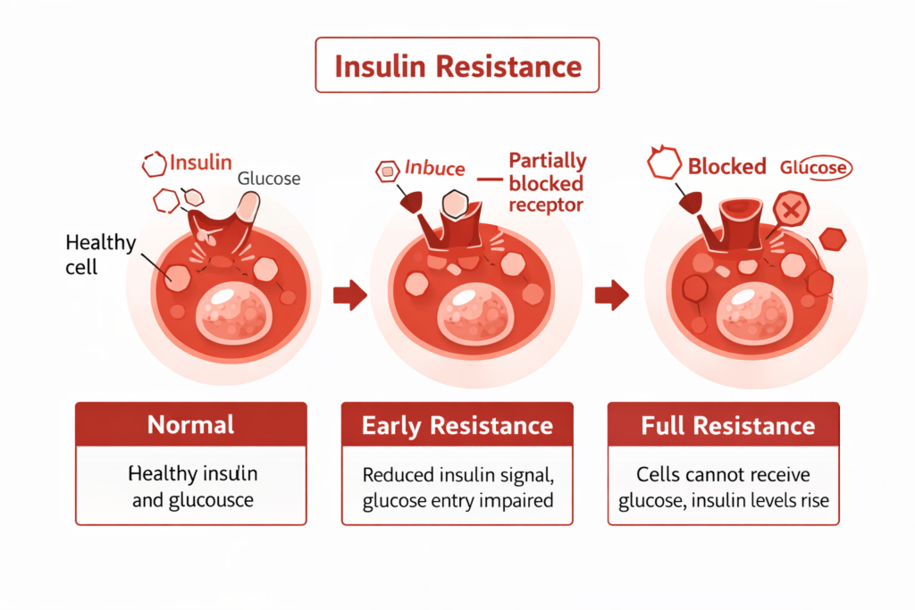 Visceral fat is the fat stored deep within the abdominal cavity, surrounding the liver, pancreas, and intestines. Unlike subcutaneous fat (the fat you can pinch), visceral fat is metabolically active; it continuously releases inflammatory cytokines, free fatty acids, and adipokines that directly impair insulin signalling.