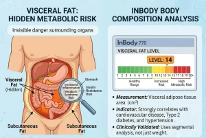 Fat tissue is biologically active. As fat accumulates around internal organs, it disrupts metabolic signalling, promotes inflammation, and impairs liver and cardiovascular function. This is precisely what semaglutide is designed to reduce and precisely what InBody quantifies.