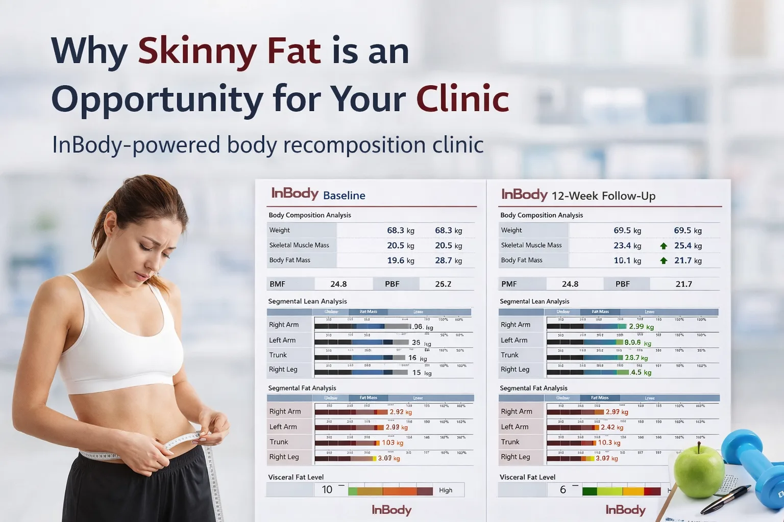 Yes. Unlike a scale, an InBody scan provides a Skeletal Muscle Mass and Body Fat Mass breakdown. A classic “C-shaped” profile on the InBody result sheet (where weight and BMI are normal but muscle is low and fat is high) is a clear indicator of the skinny-fat condition.